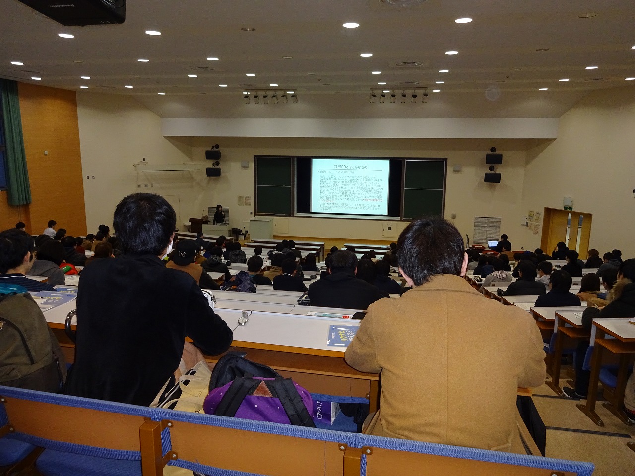 平成28年1月13日(水)、工学部キャンパス4号館大示範教室におきまして、履歴書作成ポイントマスター講座が開催されました。188名の学生が参加しました。今回のテーマ「飾らない自分で勝負する学生時代のエピソード」をキャリアコンサルタントの高橋由紀子先生がご講演くださいました。